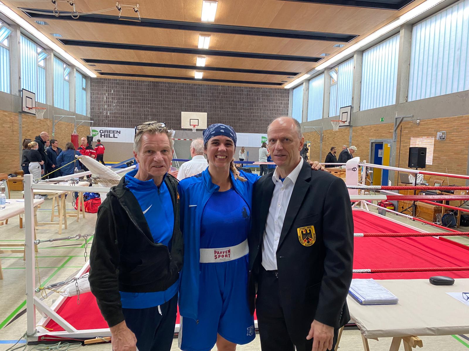 Endlich nach der langen Zeit des Pausierens greift der BKB mit Sportlern und Sportlerinnen wieder in das Amateurboxen auf Wettkämpfen ein. Nachdem David Brumar (NRW Meister) und Lennart Brendler (Vizewestfalenmeister) erfolgreich waren, konnte nun Valentina Peer ihren ersten Amateur-Boxkampf bestreiten. Bei dem Kadersichtungsturnier am 30.11.2021 in Warendorf traf sie auf die erfahrene Corinna Krusche (20 Kämpfe) vom BC Mülheim-Dümpten e.V. In einem technisch hochklassigen Kampf, bei dem Valentina ihre Gegnerin ständig unter Druck setzte, mußte sich unsere Boxerin der größeren Erfahrung der Mülheimer Konterboxerin geschlagen geben. Betreut wurde Valentina von ihrer Freundin Christina Hammer und unserem Trainer Jürgen Milhausen. Trainer Wilfried Peters war bei diesem Event des BC Warendorf als Punktrichter eingesetzt.