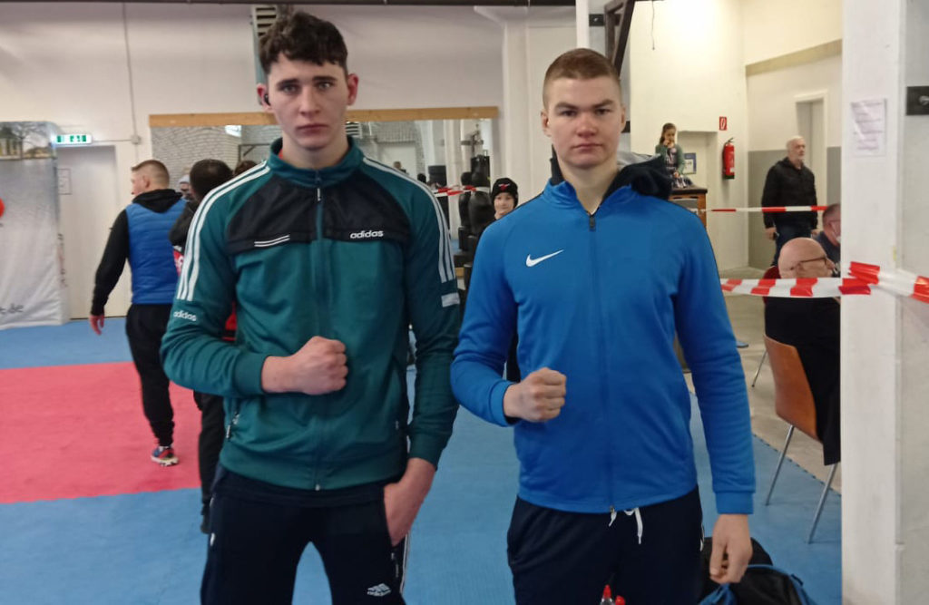 David mit seinem zweiten Coach Luca Milhausen (nicht auf dem Foto Coach Jürgen Milhausen) nach dem erfolgreichen Kampf mit Medaille.