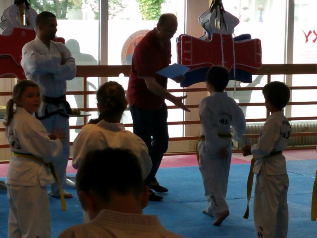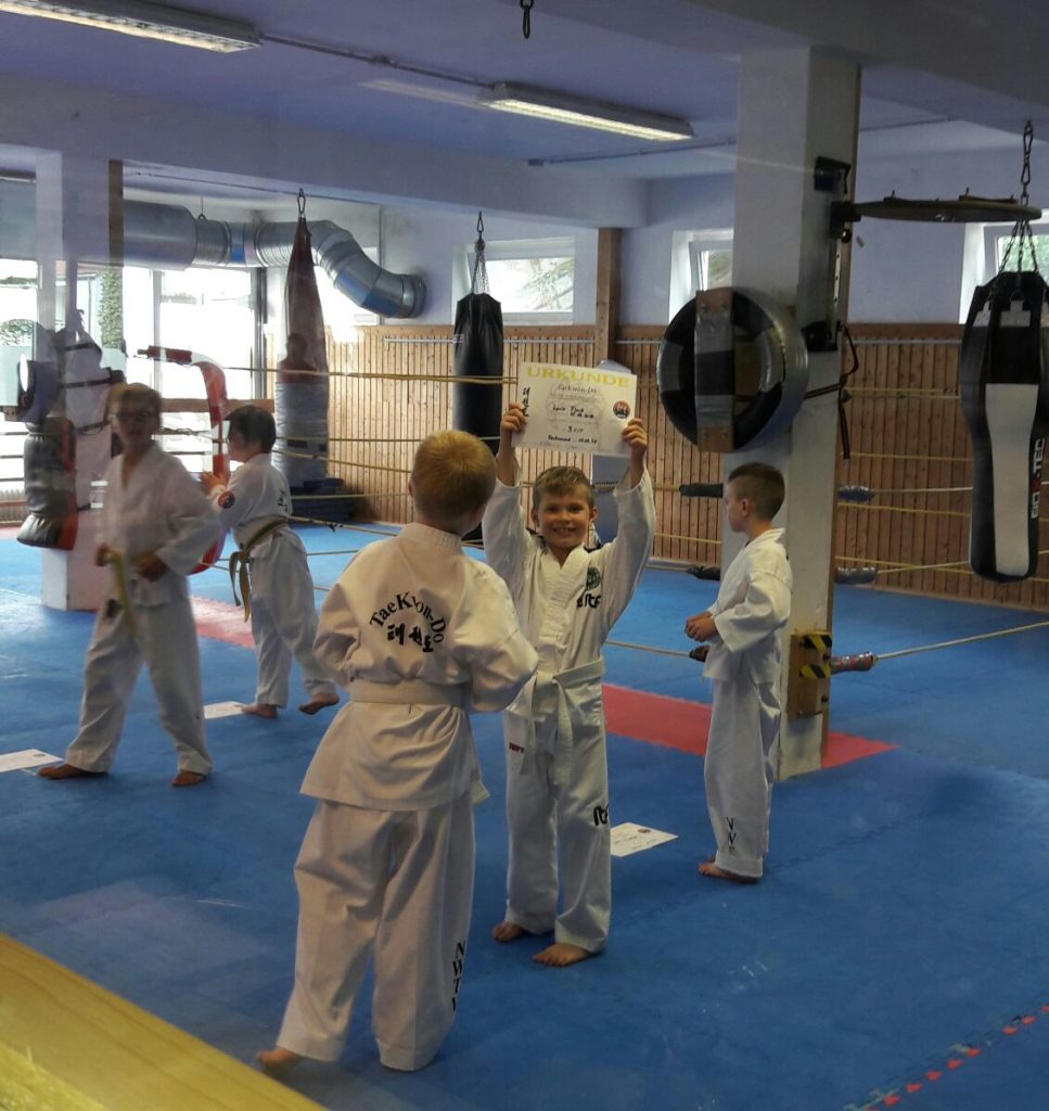 Nach einer kleinen Vorprüfung stellten sich die Taekwon-Do Kinder des BKV der ersten Graduierungsprüfung in diesem Jahr am 7.7.2017. Als NWTV Verbandsprüfer fungierte Wilfried Peters, 6.Dan, der die abgebildeten Taekwon-Do-Ka teilweise bei ihrer ersten Prüfung graduierte. Es folgte eine weitere Gruppe mit Farbgurten, die Tul, Matsogi und Freikampf vorführten, bevor alle Eltern und Kinder beim gemeinsamen Sommergrillen den sonnigen Tag ausklingen ließen.