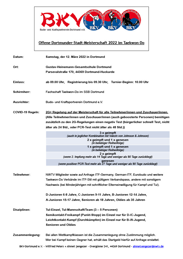 NWTV Mitglieder sowie auf Anfrage ITF-Germany, German-ITF, Eurobudo und weitere Taekwon-Do Verbände im ITF-Stil mit gültigem Verbandspass, andere mit sonstigem Nachweis (bei Minderjährigen mit schriftlicher Elterneinwilligung für Kampf und Tul).