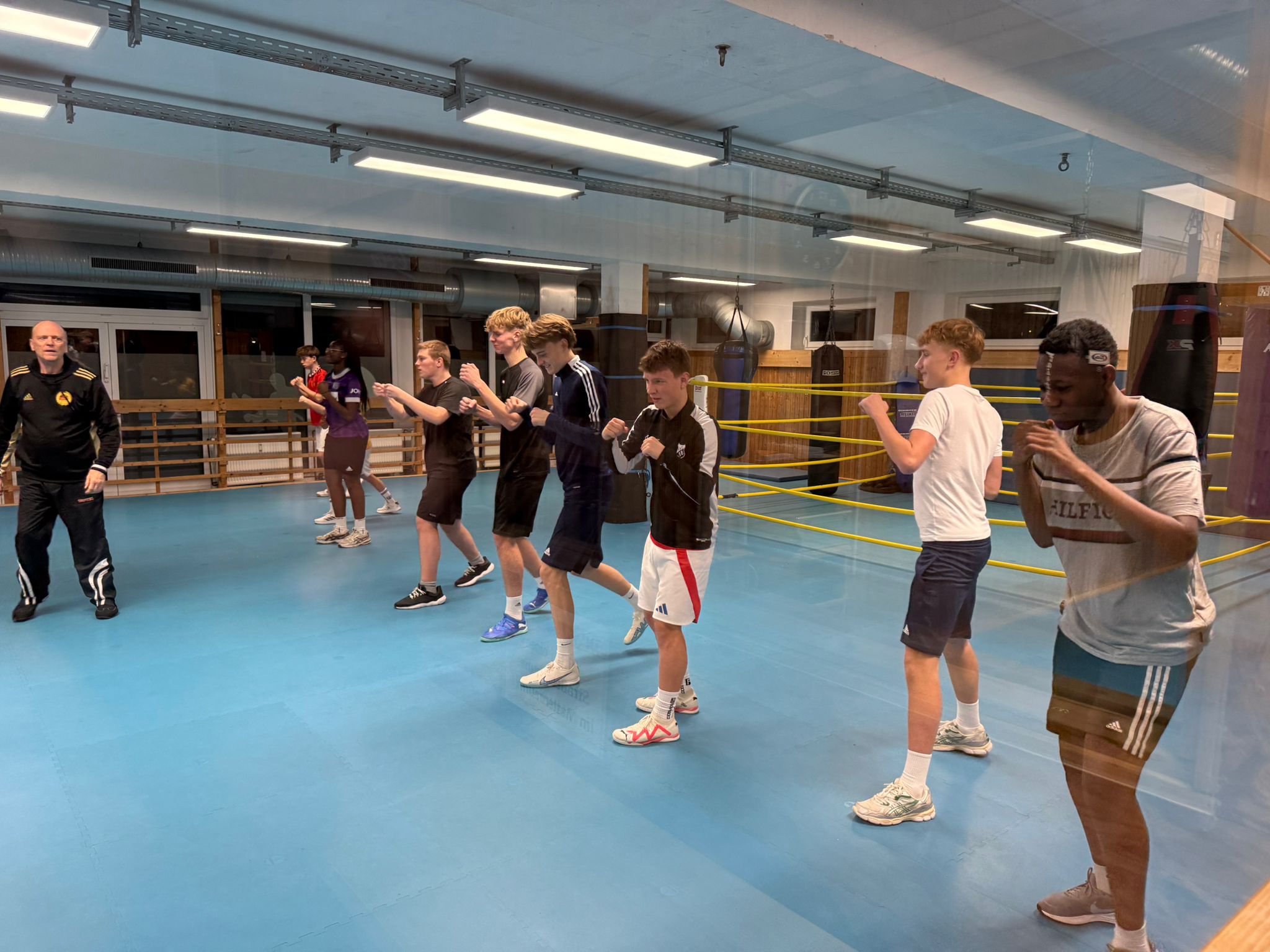Nach einer Aufwärmgymnastik ging es zur sogenannten Boxgrundschule, in der die Techniken erlernt werden, um sie dann beim Schattenboxen ohne Gegner auszuprobieren.