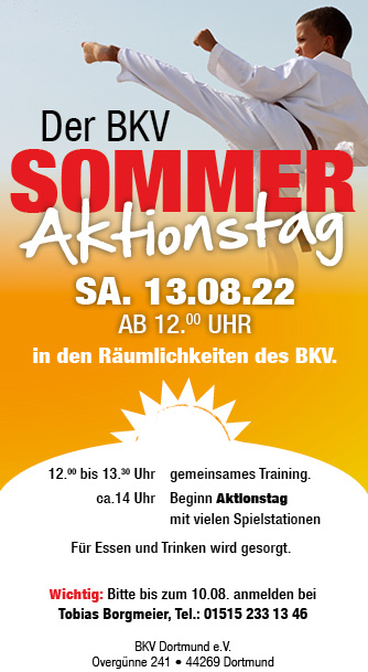 Samstags 6.8.2022 und 13.8.2022 Training Kampfsport im BKV jeweils 12.00 – 13.30 Uhr